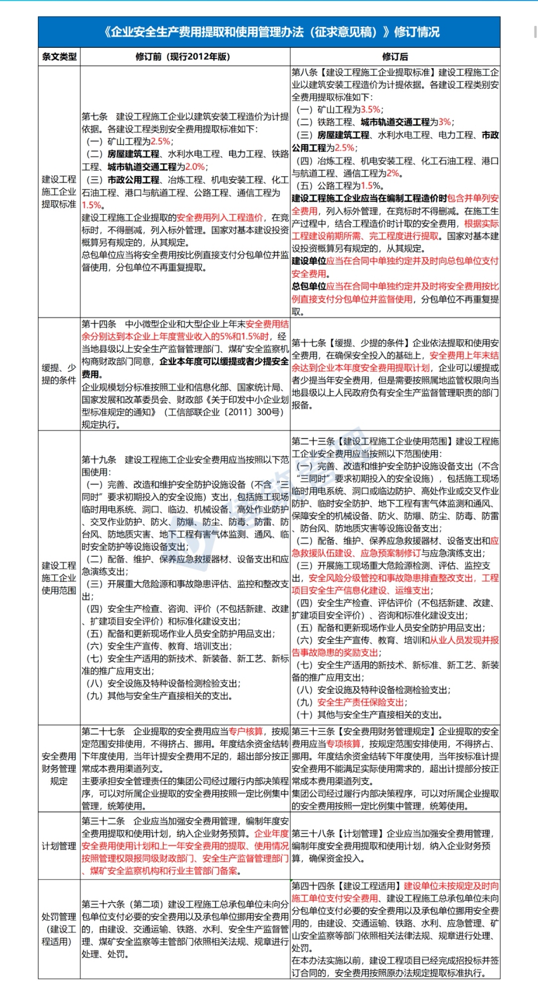 1、建設(shè)工程施工企業(yè)提取標(biāo)準(zhǔn)變化
