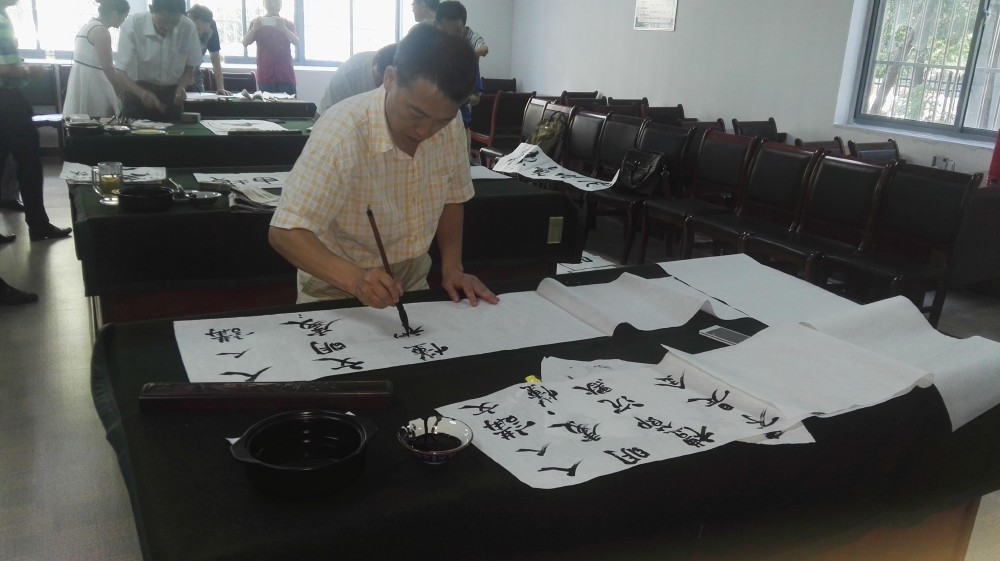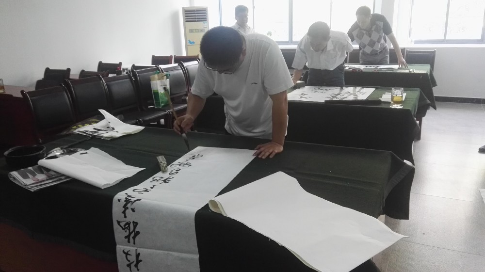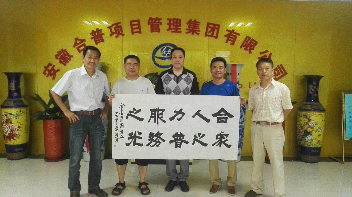 2016年7月24日,省書(shū)法名家:劉少?gòu)?qiáng)先生、李東升先生、省書(shū)法家、篆刻家:劉剛先生、中國(guó)著名書(shū)畫(huà)家:完彥玉升先生及合肥民建市委蜀山基層委一行,頂著高溫酷暑來(lái)合普集團(tuán)慰問(wèn),現(xiàn)場(chǎng)創(chuàng)作書(shū)法、畫(huà)作,為合普集團(tuán)員工送上精美的精神文明大餐。據(jù)安徽書(shū)畫(huà)研究院副秘書(shū)長(zhǎng)劉剛介紹,此次慰問(wèn)活動(dòng)是貫徹黨中央提出的“社會(huì)主義文化大發(fā)展、大繁榮”精神,豐富企業(yè)文化氛圍,更重要的是通過(guò)這樣的方式,以表對(duì)企業(yè)為安徽建設(shè)所做貢獻(xiàn)的感激之情。省著名書(shū)法家劉少?gòu)?qiáng)先生為合普集團(tuán)公司題字,集團(tuán)公司董事長(zhǎng)張道祥與書(shū)畫(huà)家們合影留念。
