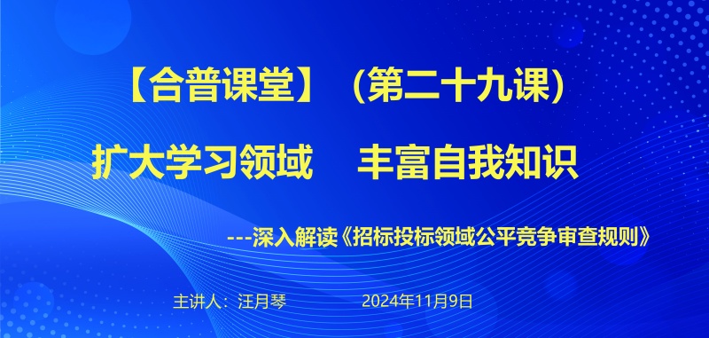 11 月 9 日,集團內(nèi)部課堂培訓(xùn)迎來了第 二十九期,此次培訓(xùn)聚焦于對行業(yè)發(fā)展有著重要影響的《招標投標領(lǐng)域公平競爭審查規(guī)則》(八部委令第 16 號),由集團招標部總工程師汪月琴擔任主講人,為集團員工帶來了一場干貨滿滿的專業(yè)解讀。