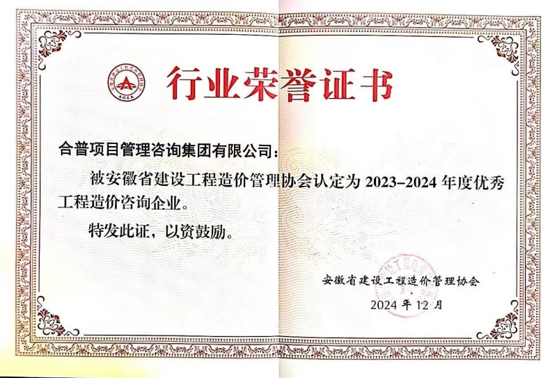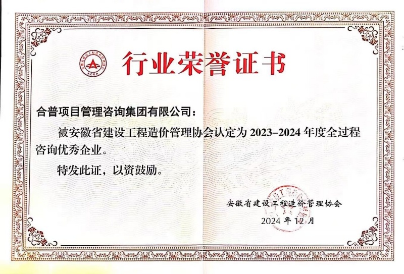 近日,安徽省建設(shè)工程造價(jià)管理協(xié)會(huì)發(fā)布了《關(guān)于公布 2023-2024 年度安徽省建設(shè)工程造價(jià)管理協(xié)會(huì)優(yōu)秀工程造價(jià)咨詢企業(yè)和優(yōu)秀造價(jià)工程師認(rèn)定名單的通知》,合普集團(tuán)憑在工程造價(jià)咨詢領(lǐng)域的卓越表現(xiàn)和專業(yè)實(shí)力,一舉斬獲 “2023-2024年度優(yōu)秀工程造價(jià)咨詢企業(yè)” 和 “2023-2024年度全過程咨詢優(yōu)秀企業(yè)” 兩項(xiàng)殊榮。