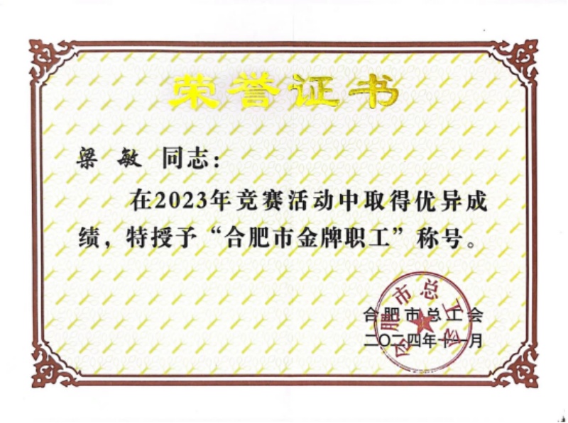 近期,在合肥市總工會發(fā)布的《關(guān)于認定合肥市 2023 年度職工創(chuàng)新競賽優(yōu)勝選手 “合肥市金牌職工” 的通報》中,集團梁敏同志榮耀上榜,成為 2023 年度“合肥市金牌職工”中的一員。這一殊榮,是對其在行業(yè)內(nèi)卓越表現(xiàn)的高度認可,也是對全市各領域職工創(chuàng)新競賽和技能比武中佼佼者的有力褒獎。