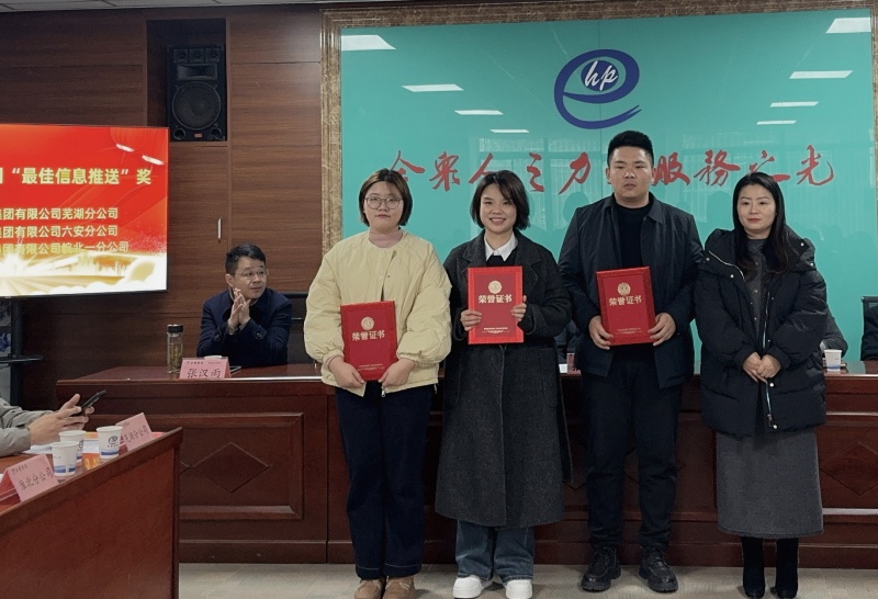 “最佳信息推送”獲獎集體:合普集團皖北一分公司、蕪湖分公司、六安分公司(從左至右)