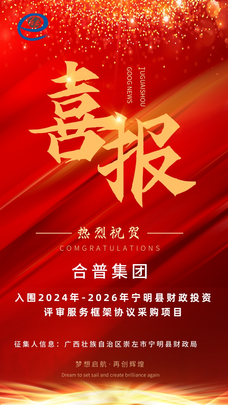 喜報(bào) ▏合普集團(tuán)入圍2024-2026年廣西寧明縣財(cái)政投資評審服務(wù)框架協(xié)議采購項(xiàng)目