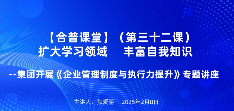 2025年2月8日,合普課堂第32期培訓如期開展。本次培訓的主題為《企業(yè)管理制度與執(zhí)行力提升》,由集團綜合部主任焦愛麗擔任主講人。