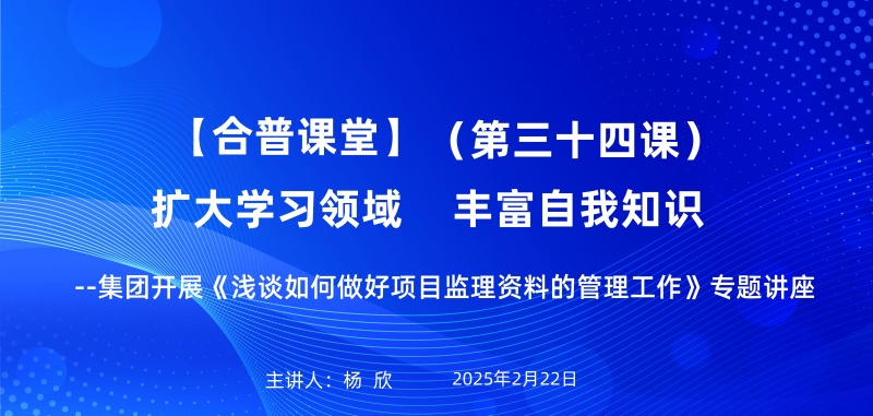 2月22日,合普課堂第三十四期專題講座圓滿舉辦,本期是由監(jiān)理部楊欣,以《淺談如何做好項目監(jiān)理資料的管理工作》為主題,為參訓人員帶來了一場兼具理論深度與實踐指導的精彩課程。本次講座聚焦監(jiān)理資料管理的核心要點,結合行業(yè)規(guī)范與真實案例,系統(tǒng)梳理了監(jiān)理資料從編制到歸檔的全流程管理方法,為企業(yè)提升項目管理水平提供了重要參考。