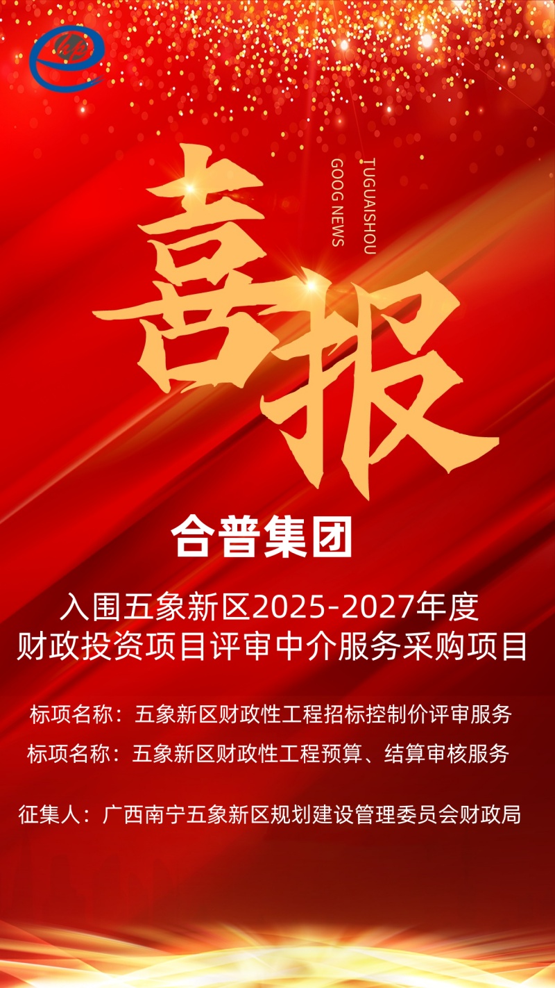 喜報(bào) ▏合普集團(tuán)入圍廣西南寧五象新區(qū)2025-2027年度財(cái)政投資項(xiàng)目評(píng)審中介服務(wù)采購項(xiàng)目