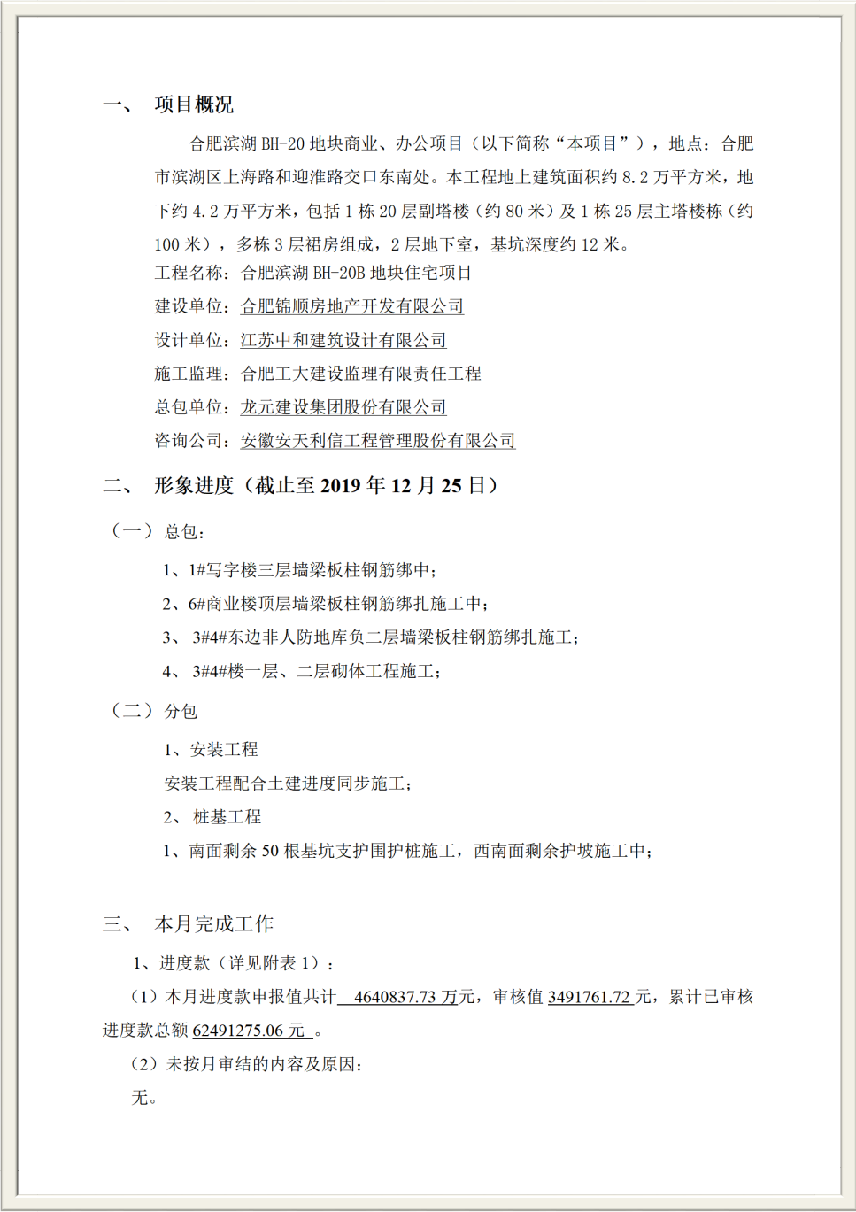 項目名稱:合肥濱湖BH20地塊項目四期施工總承包工程