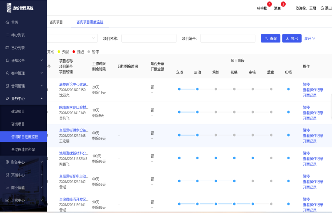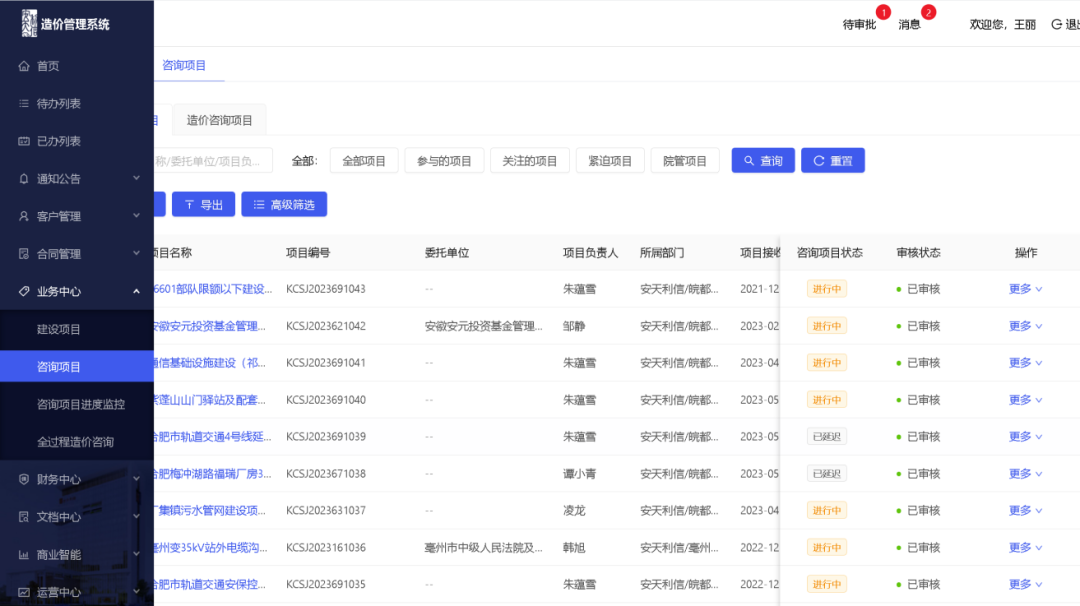我公司自主研發(fā)全過程造價管理系統(tǒng),對全公司造價業(yè)務(wù)進行管理、數(shù)據(jù)錄入、審批等工作,全面提高工作效率和過程資料保存的完整性,提高了項目管理的質(zhì)量和進度管控力度,是我公司特色: