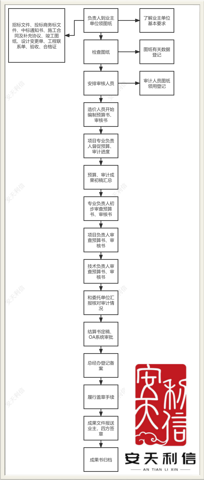 5、業(yè)務(wù)實施前,對所有參與本工程的各方管理主體的相關(guān)人員進行法制教育及工作流程交底,保證在遵循國家有關(guān)法律及完善的管理流程的基礎(chǔ)上開展審計工作。
