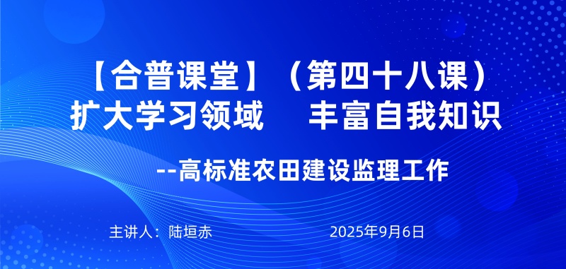 9月6日,【合普課堂】第48期順利開講,本次課程由合普集團工程監(jiān)理部經(jīng)理陸垣赤擔任主講,圍繞“高標準農(nóng)田建設監(jiān)理工作”展開了一場內(nèi)容扎實、貼近實戰(zhàn)的分享。