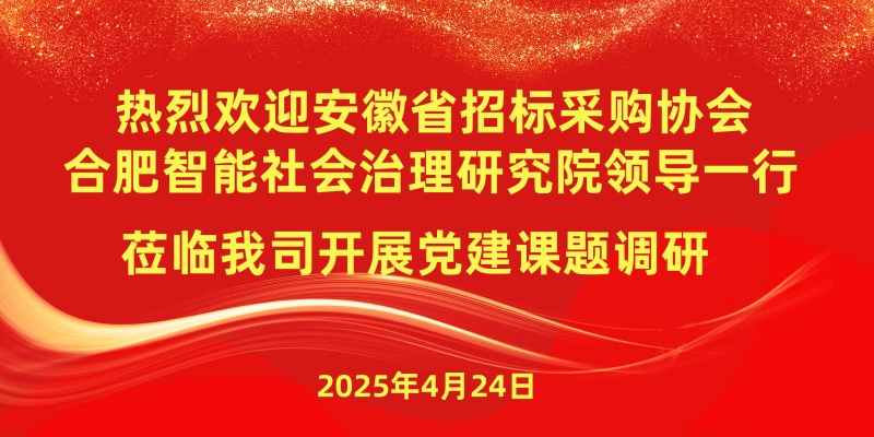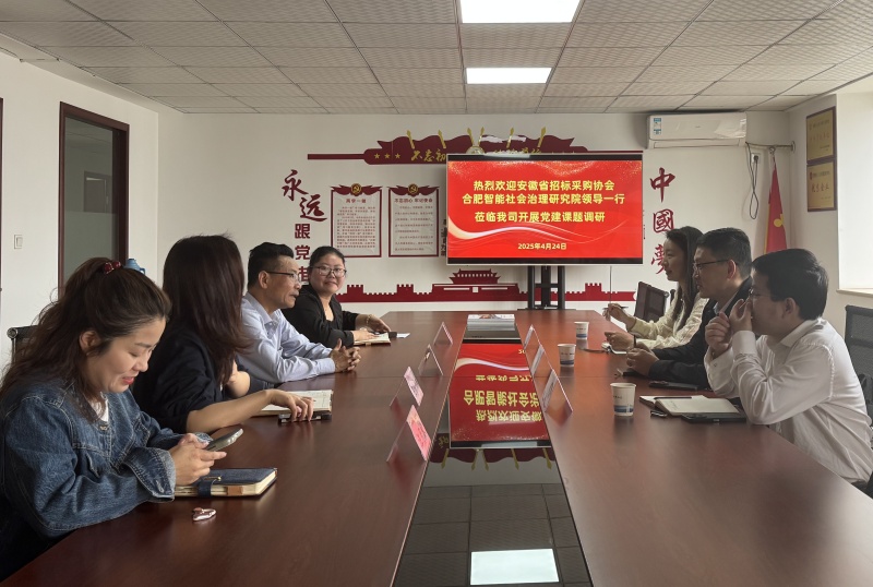 4月24日,省招標(biāo)采購協(xié)會黨支部書記賈海波、合肥智能社會治理研究院高級研究員一行蒞臨我司,圍繞企業(yè)黨建工作開展專題調(diào)研。集團(tuán)領(lǐng)導(dǎo)高度重視此次調(diào)研活動,黨務(wù)工作者焦愛麗作綜合匯報,雙方就黨建工作成效與不足,創(chuàng)新實踐及未來發(fā)展方向展開深入交流。