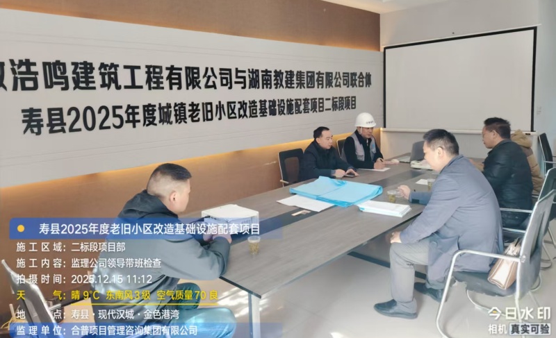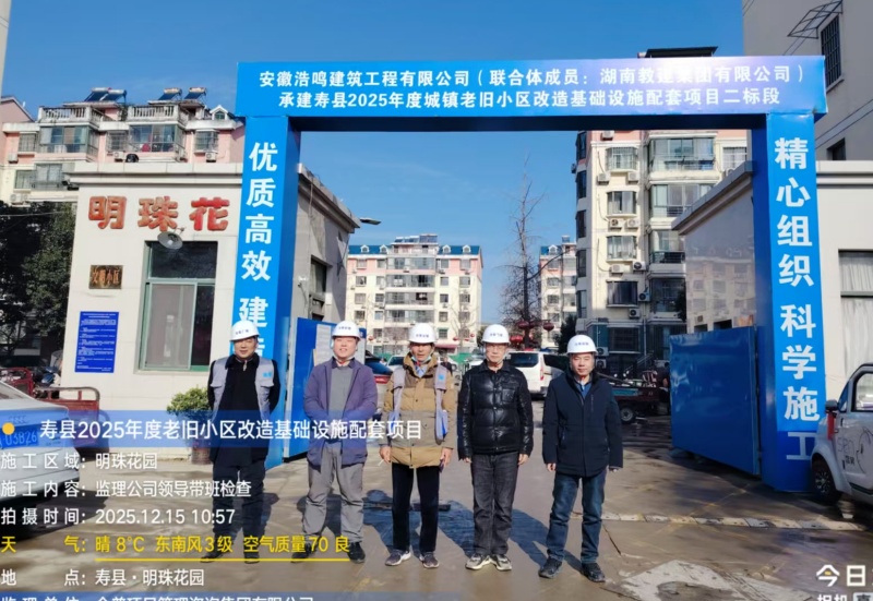 12月15日,集團(tuán)監(jiān)理公司副總經(jīng)理陸垣赤帶隊(duì),質(zhì)量安全中心副主任汪志華及檢查組成員陳志平,前往公司監(jiān)理的“壽縣2025年度城鎮(zhèn)老舊小區(qū)改造基礎(chǔ)設(shè)施配套項(xiàng)目二標(biāo)段”進(jìn)行巡查,開展工程質(zhì)量與安全生產(chǎn)管理的綜合檢查與指導(dǎo)。此次檢查旨在強(qiáng)化監(jiān)理履職,壓緊壓實(shí)各方責(zé)任,確保這項(xiàng)重點(diǎn)民生工程能夠高質(zhì)量、高標(biāo)準(zhǔn)、安全平穩(wěn)地推進(jìn)。