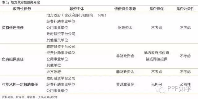 地方政府具有償還責(zé)任的債務(wù),也就是我們通常所說的地方政府債務(wù),又稱“一類債務(wù)”,是指地方政府(含政府部門和機(jī)構(gòu),下同)、經(jīng)費(fèi)補(bǔ)助事業(yè)單位、公用事業(yè)單位、政府融資平臺公司和其他相關(guān)單位舉借,確定由財(cái)政資金償還的債務(wù),這是一個(gè)關(guān)鍵點(diǎn)。
