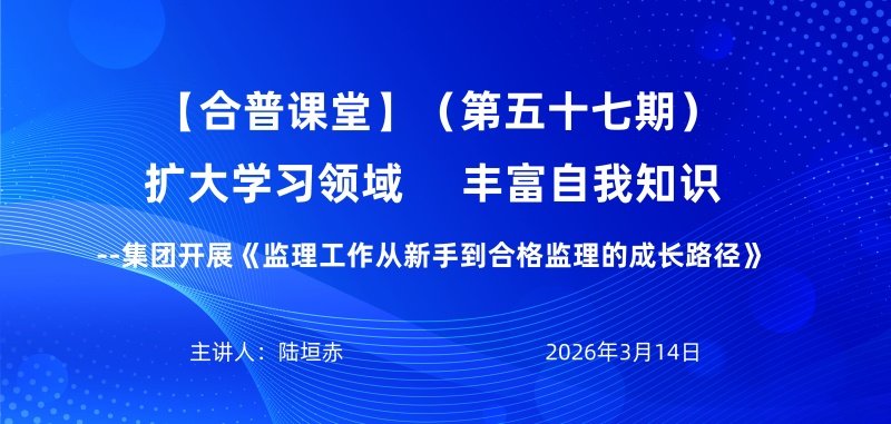 3月14日,合普課堂第57期在集團(tuán)會議室如期開講。本期課堂由監(jiān)理部經(jīng)理陸垣赤擔(dān)任主講,他以《監(jiān)理工作一本通:從新手到合格監(jiān)理的成長路徑》為題,為參訓(xùn)人員帶來了一場專業(yè)分享。