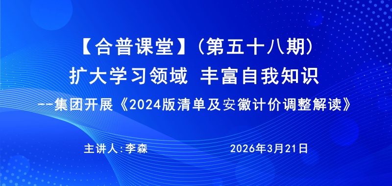 3月21日,合普課堂第58期專題培訓(xùn)如期舉行。本次培訓(xùn)由集團(tuán)造價部李森主講,聚焦2024版《建設(shè)工程工程量清單計價標(biāo)準(zhǔn)》(GB/T50500-2024)核心變化與安徽省建設(shè)工程計價依據(jù)動態(tài)調(diào)整(第2期)關(guān)鍵內(nèi)容,為造價業(yè)務(wù)人員帶來一場專業(yè)、實用、貼合實操的政策解讀課。