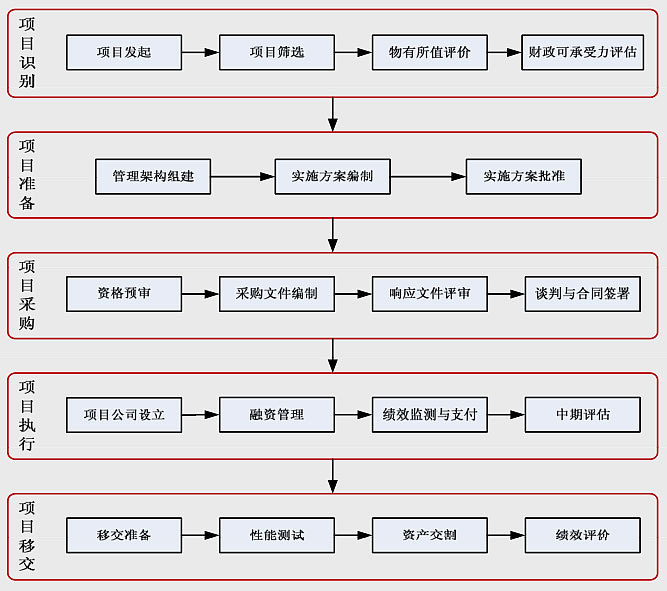 按財(cái)務(wù)部發(fā)布《政府和社會(huì)資本合作模式操作指南》,PPP項(xiàng)目實(shí)施流程如下: