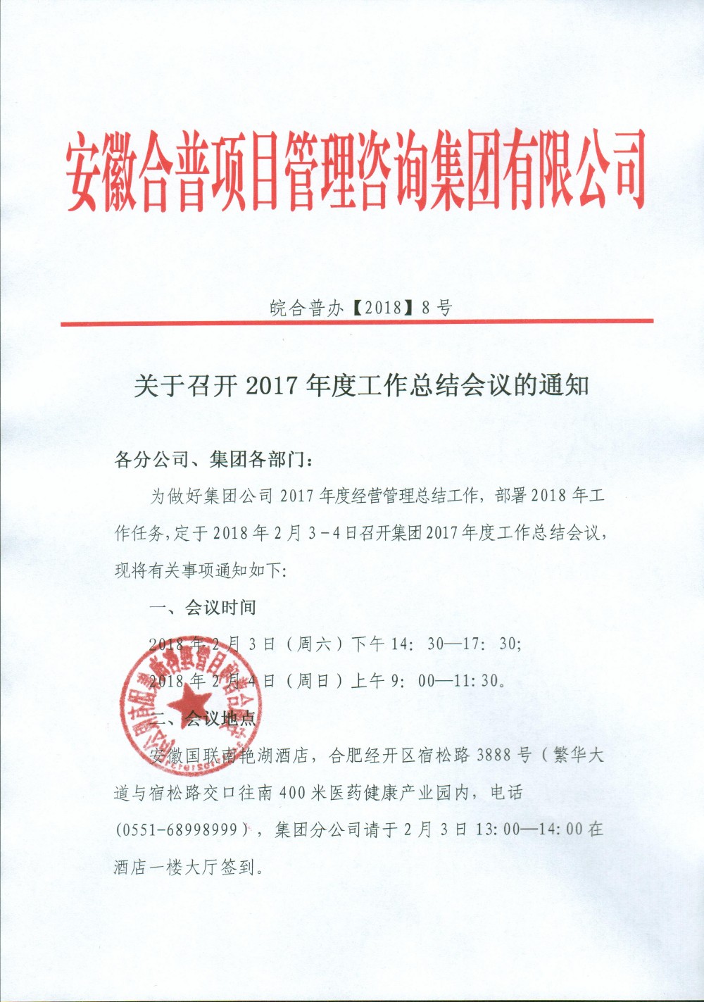 關(guān)于召開2017年度工作總結(jié)會(huì)議的通知