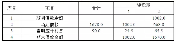 確認貸款額為1670萬元,根據(jù)已知投資進度、利率及利息的計算原則,測算項目建設(shè)期利息90萬元。