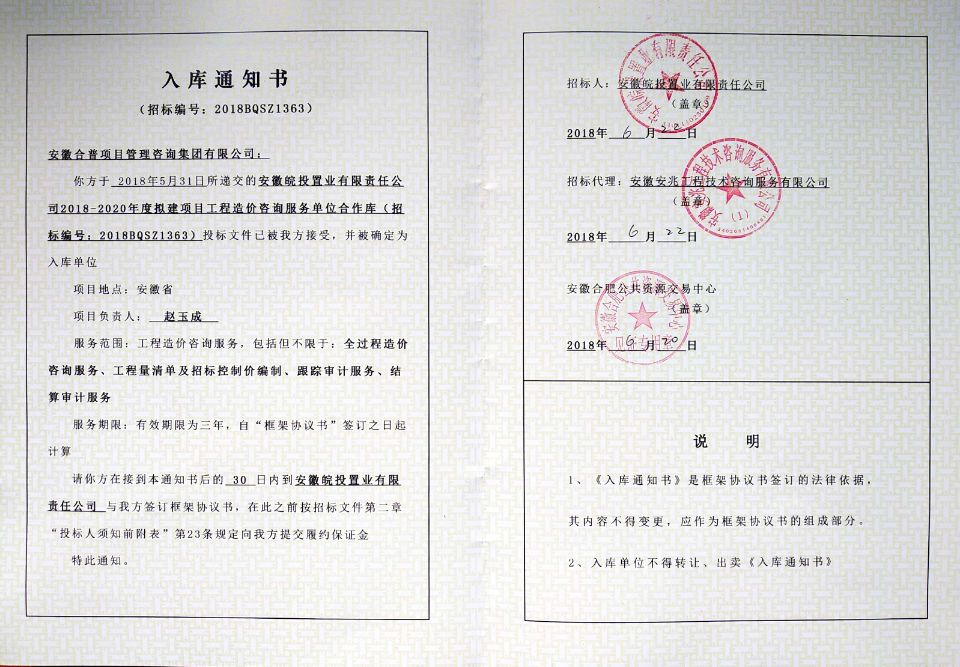 熱烈祝賀我公司入圍安徽皖投置業(yè)有限責(zé)任公司2018-2020年度