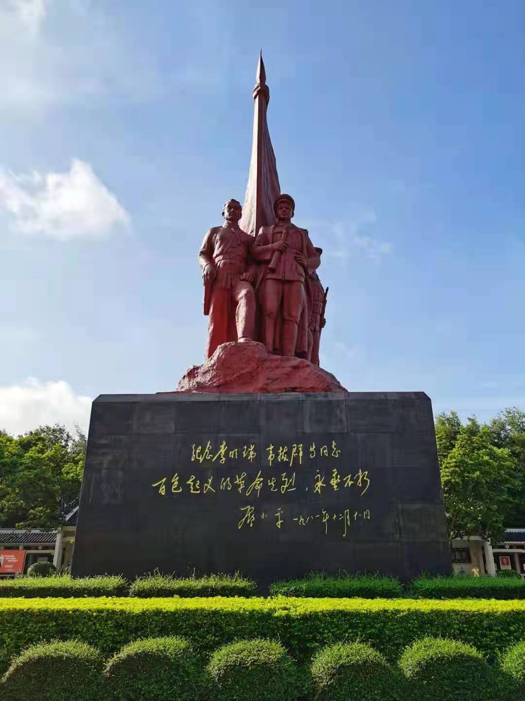 1929年12月11日,鄧小平、張?jiān)埔菁绊f拔群等領(lǐng)導(dǎo)廣西右江地區(qū)的一部分革命士兵和農(nóng)民,在百色舉行武裝起義,成立中國工農(nóng)紅軍第七軍和右江工農(nóng)民主政府。鄧小平任前敵委員會(huì)書記兼第七軍政治委員,張?jiān)埔萑蔚谄哕娷婇L(zhǎng),李明 瑞任紅七、紅八軍總指揮,韋拔群任紅七軍第三縱隊(duì)司令,在鄧小平的領(lǐng)導(dǎo)下,開辟和保衛(wèi)左右江革命根據(jù)地。