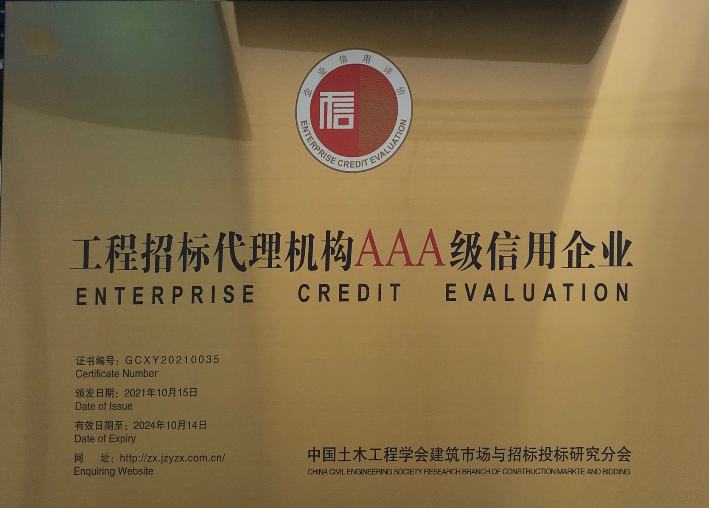 工程招標(biāo)代理機(jī)構(gòu)AAA級信用企業(yè)