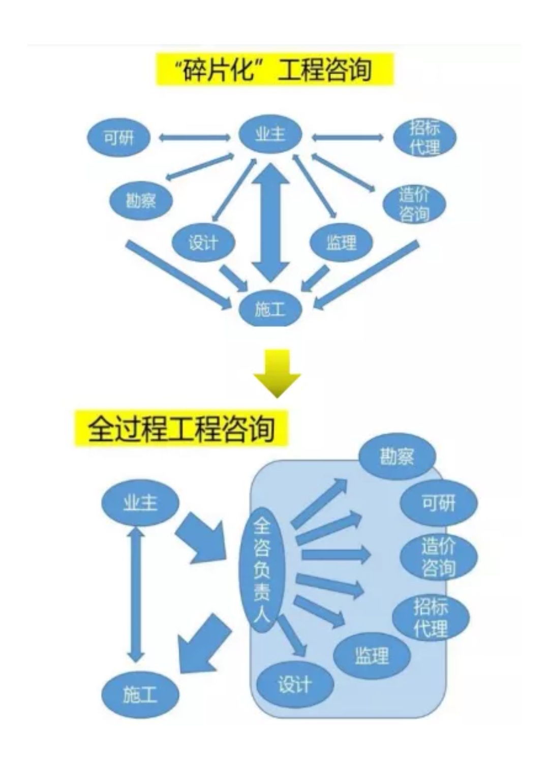 隨著現(xiàn)在一帶一路的發(fā)展,建設(shè)水平在逐漸提升,甲方對于綜合性、跨階段、一體化的咨詢服務(wù)需求日益增強(qiáng),我們現(xiàn)在傳統(tǒng)“單項服務(wù)”的模式已經(jīng)不能滿足這種綜合性需求,這時候“全過程工程咨詢”就顯得尤為重要!