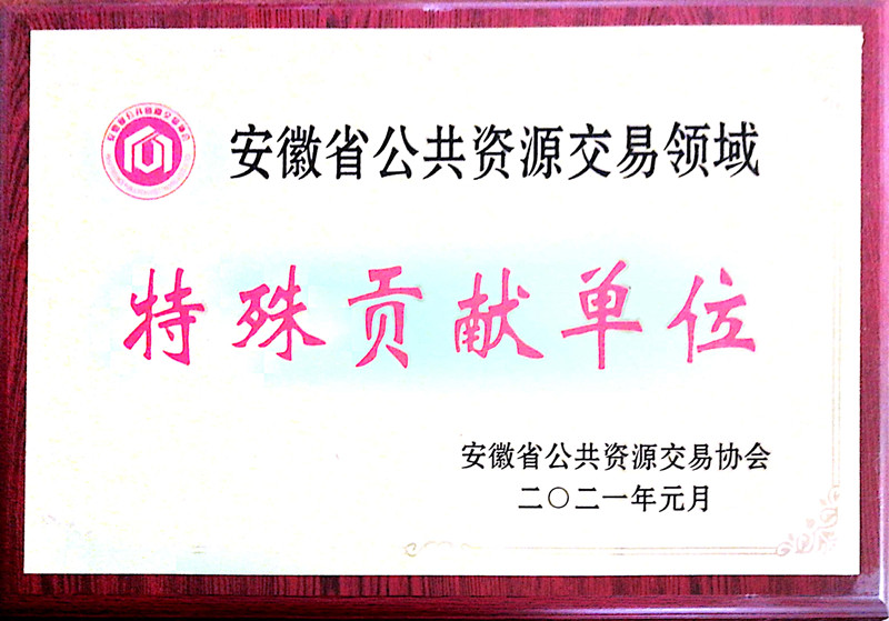 安徽省公共資源交易協(xié)會(huì)“2020年度特殊貢獻(xiàn)單位”